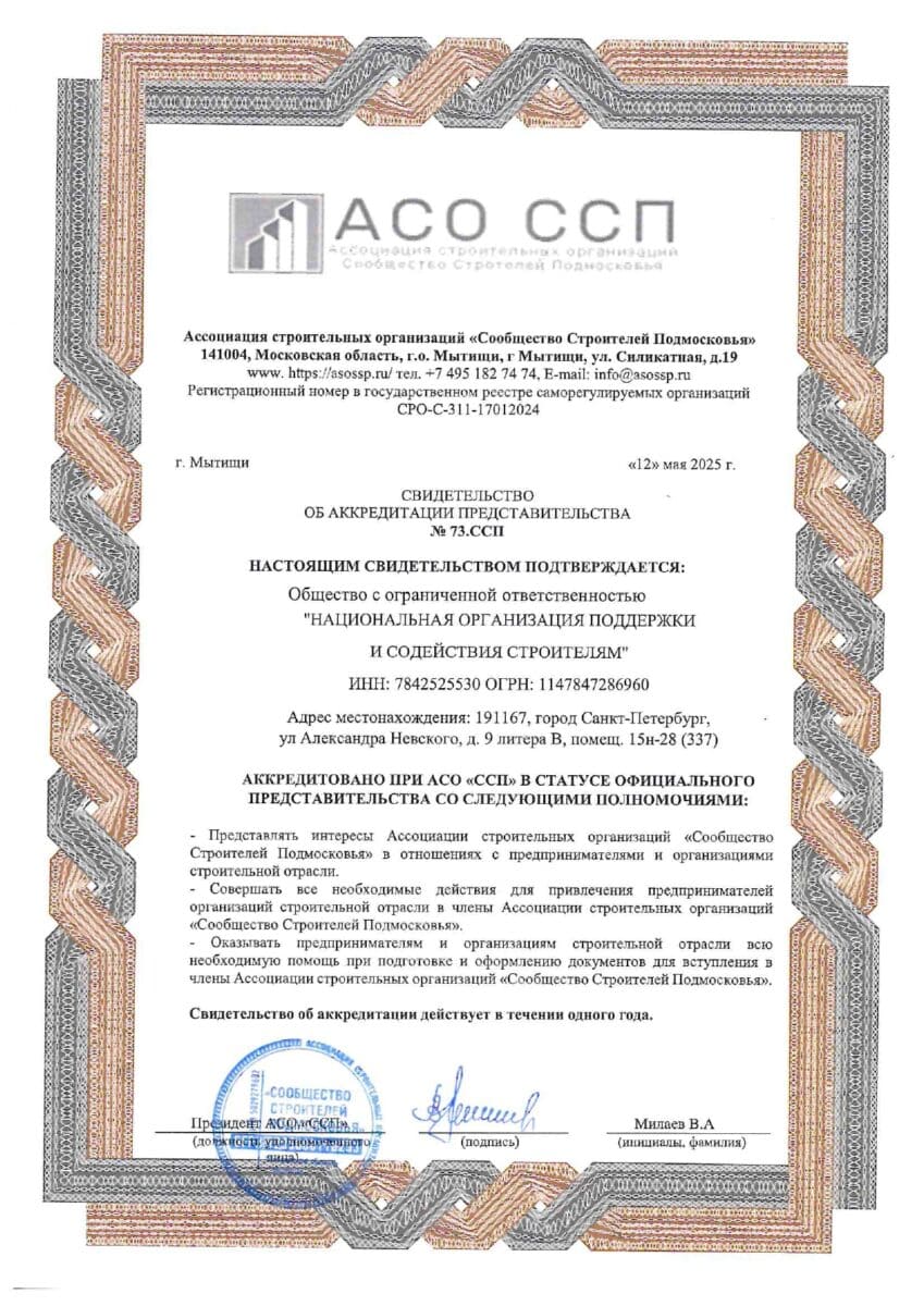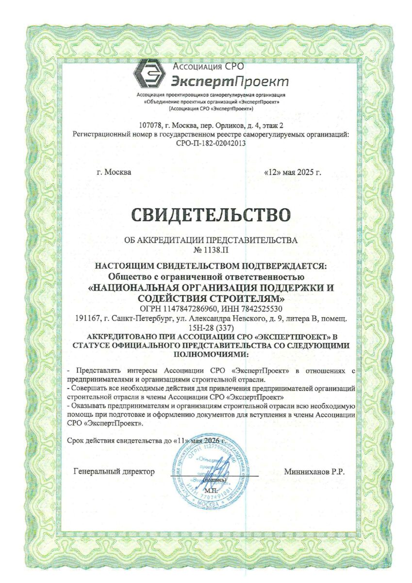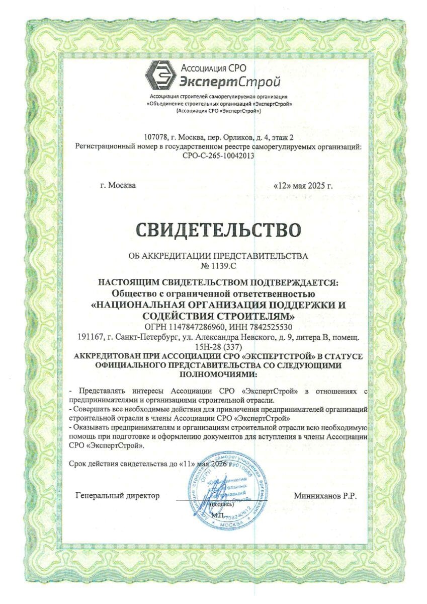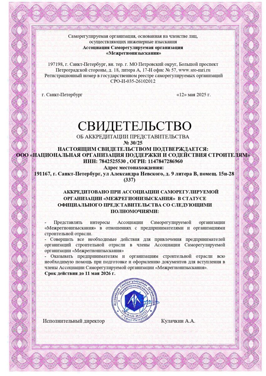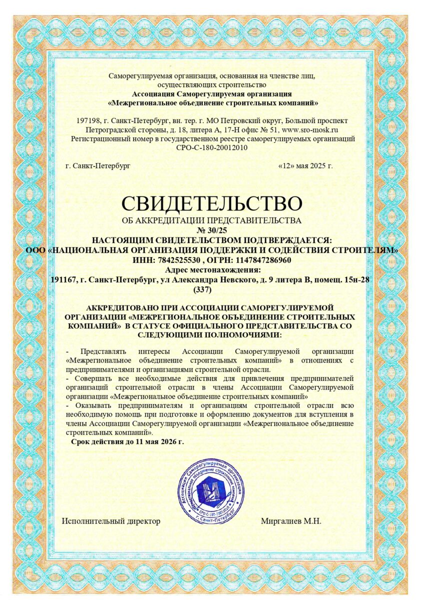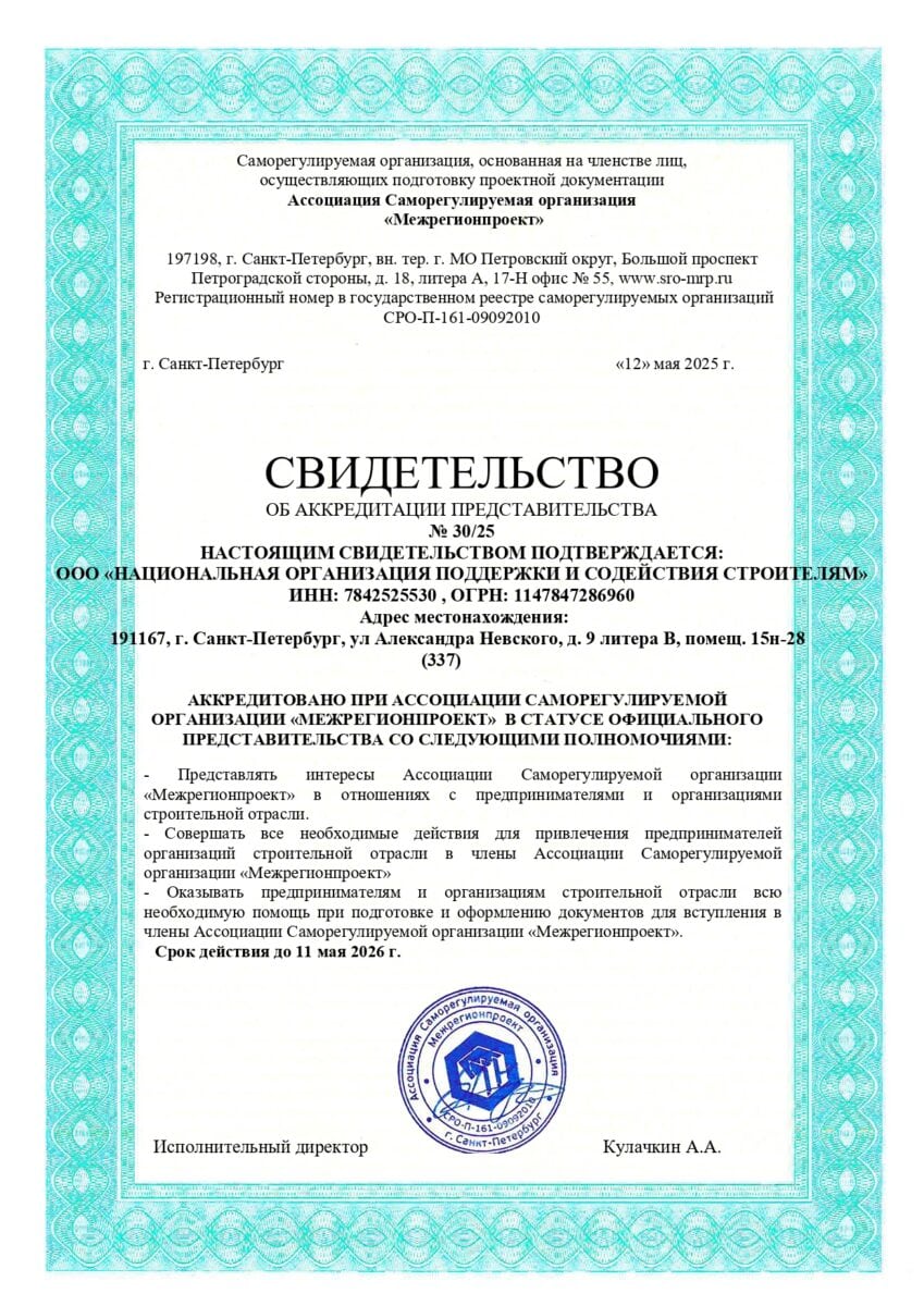 Срок регистрации в НОСТРОЙ – 10–14 дней.